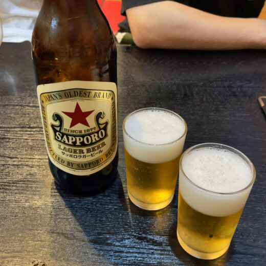 マルエフ中瓶と手羽中唐揚げを注文。